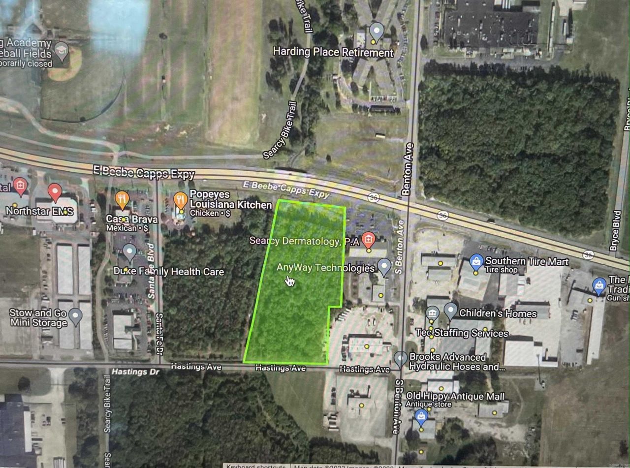 PRIME 5.6 acres of developmental commercial property, frontage, very high traffic count. Located next to Beebe Capps Professional Bldg and Hometown Orthodontics and directly across the highway from Harding University