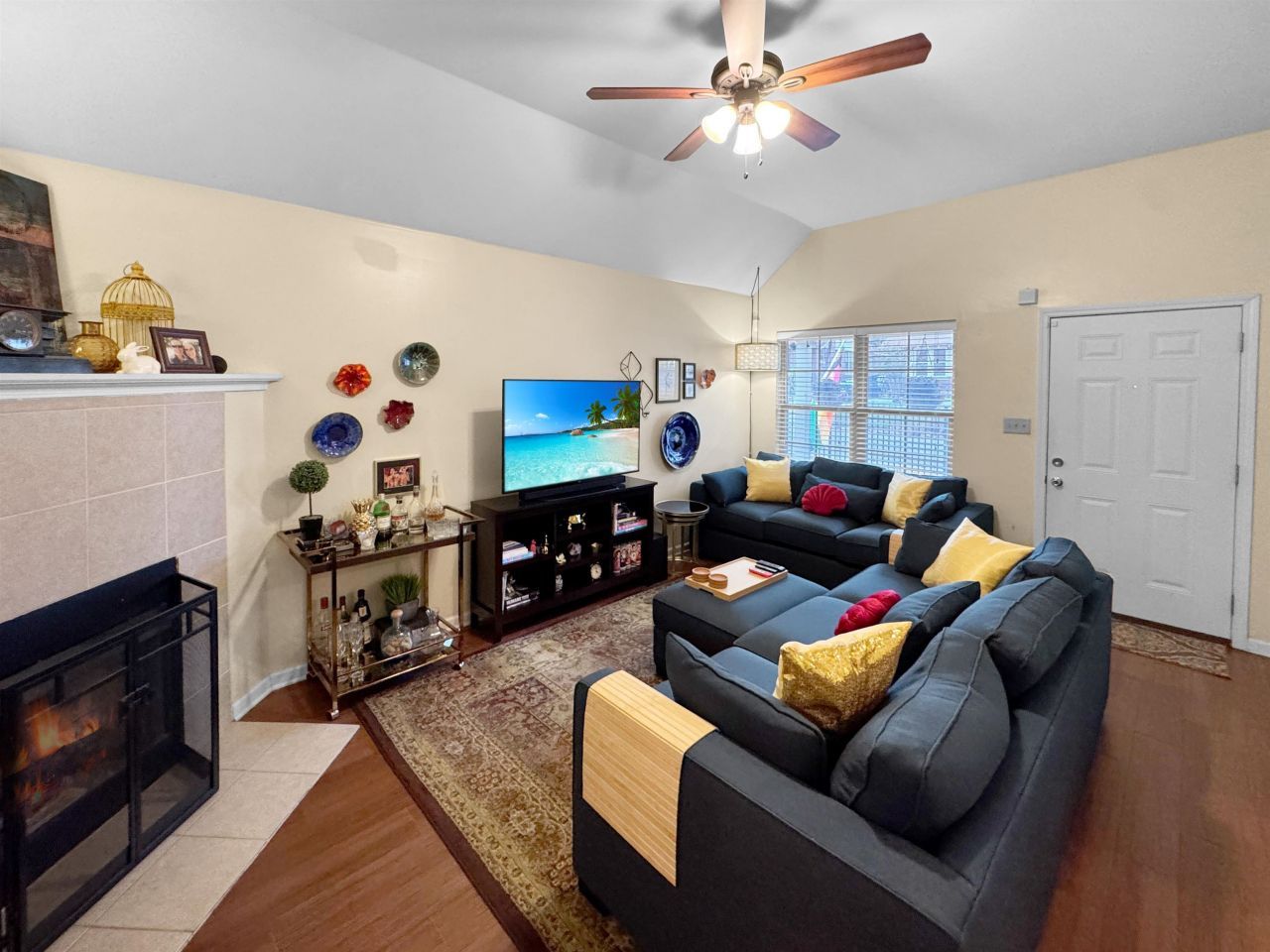 Adorable 3 bedroom, 2 bath home all on one level in a gated community conveniently located in the vibrant Crosstown area. This super cute home offers a great split bedroom floor plan, beautiful hardwood floors, and high ceilings that create a bright, open feel throughout. The spacious kitchen flows nicely into the dining area, making it perfect for everyday living and entertaining. All appliances remain for added convenience. The inviting den features a cozy corner fireplace and plenty of windows that fill the home with natural light. The primary suite is generously sized, and the home also offers a separate laundry room for added functionality. Enjoy the ease of a 2 car attached garage plus convenient visitor parking nearby. Built in 2015 and professionally managed by EZR, the community is quiet, well maintained, and includes yard maintenance in the low $60/month HOA fee. Just minutes from Crosstown Concourse where you'll enjoy a brewery, restaurants, and great shopping. Move-in ready