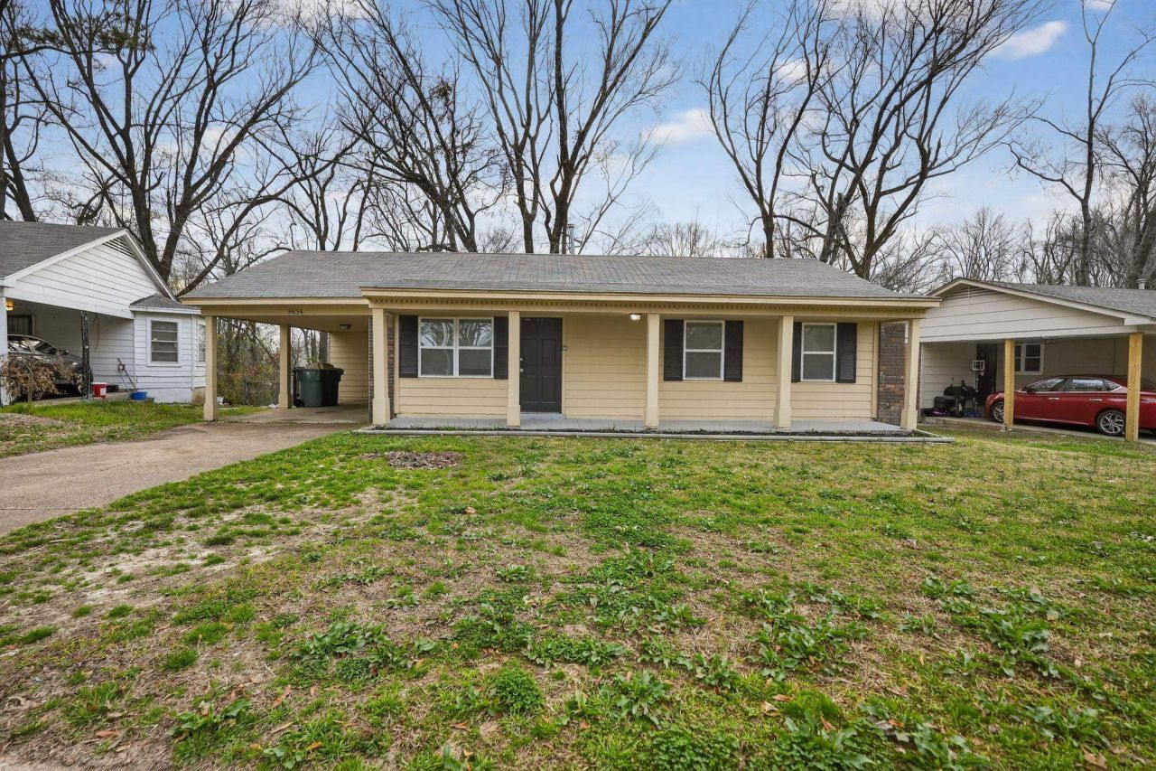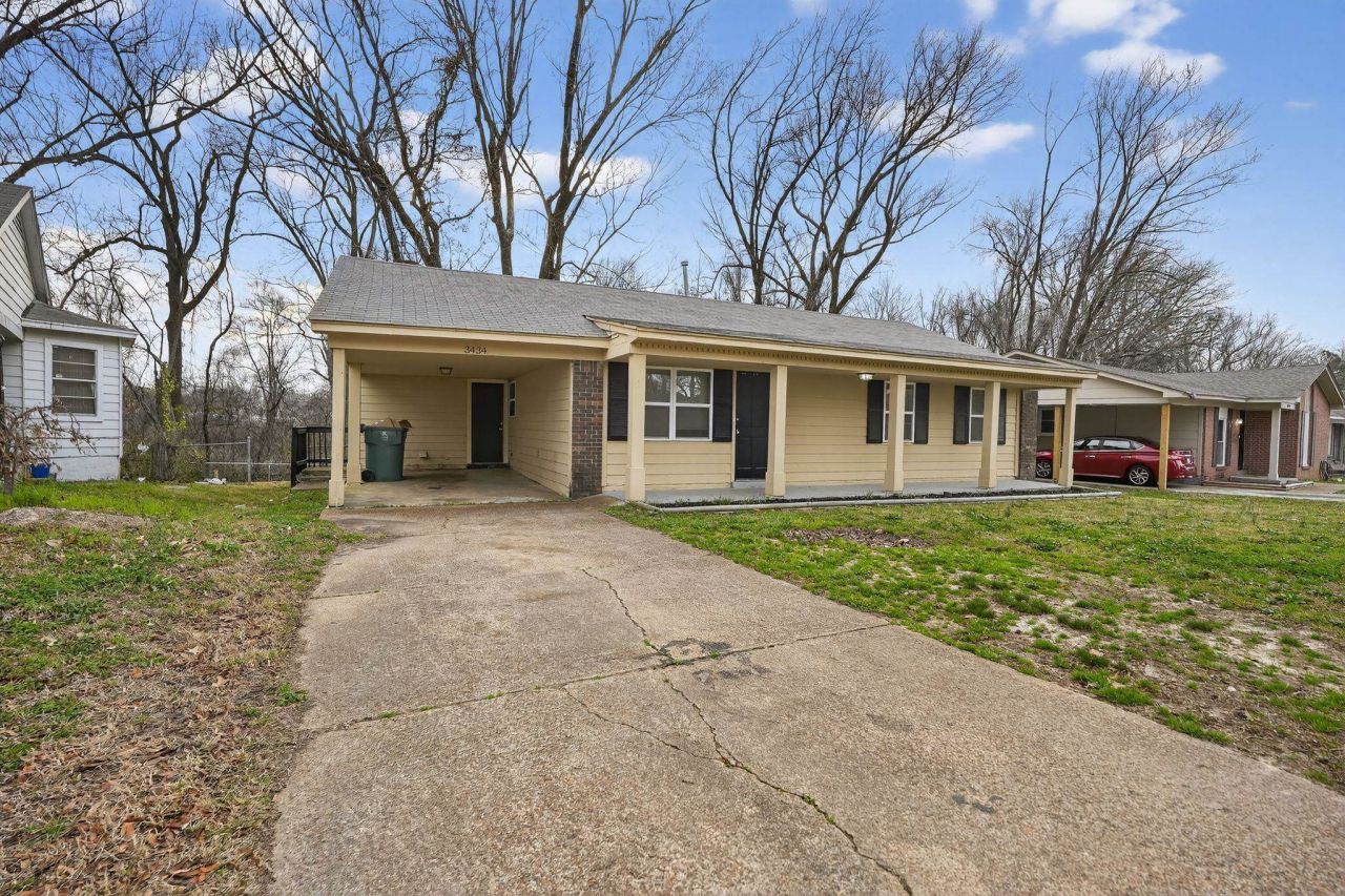 Welcome to this inviting 3-bedroom, 1.5-bathroom ranch in the established Range Hills community. This home offers a thoughtful layout featuring durable hardwoods throughout the main living areas, classic tile in the kitchen, and cozy carpeting in the bedrooms. The heart of the home is the open kitchen and dining combination, which conveniently leads to a dedicated 8x6 laundry room?providing extra storage and organizational space. The primary suite includes a private half-bathroom for added convenience. The exterior presents a low-maintenance mix of brick and vinyl siding, complemented by a charming covered front porch that spans the width of the home. Outdoor features include an attached carport and an uncovered back patio overlooking a yard lined with mature trees at the perimeter for natural privacy. Located in the 38127 ZIP code, this property sits on a manageable 0.160-acre lot with easy access to Frayser Boulevard and local amenities. A perfect blend of comfort and function.