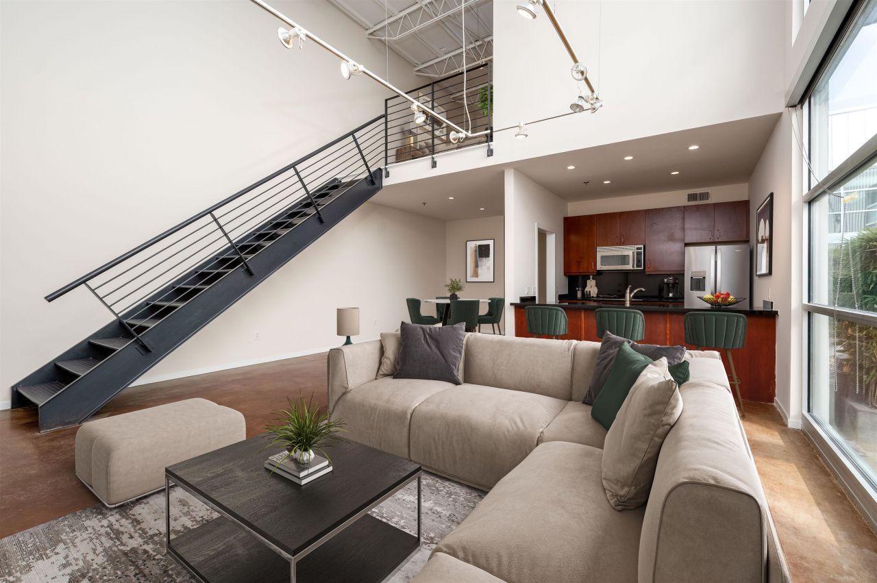 Come see this amazing 1BR/1.5BA condo in The 415! Massive picture windows overlook the patio, where you will entertain and enjoy the bamboo garden. Privacy screen included as well. Open living and dining areas are spacious with concrete floors and 15-foot ceilings with exposed trusses. The kitchen has gas cooking, granite countertops and stainless appliances. The large, loft bedroom has a huge walk-in closet, and bathroom ensuite. This condo has one assigned parking space in the gated lot just outside the building. New AC, new tile, new toilets, and several new windows replaced to ready the home for its next owner. All of this is just steps away from the Riverbluff Walk, Tom Lee Park, and all your favorite restaurants and nightlife downtown has to offer. FREE GOLF CART Included with condo purchase, plus 1st year of gated, assigned golf cart parking space rental and electricity. Free bike as well. Great ways to experience Downtown Memphis! Photos are virtually staged.