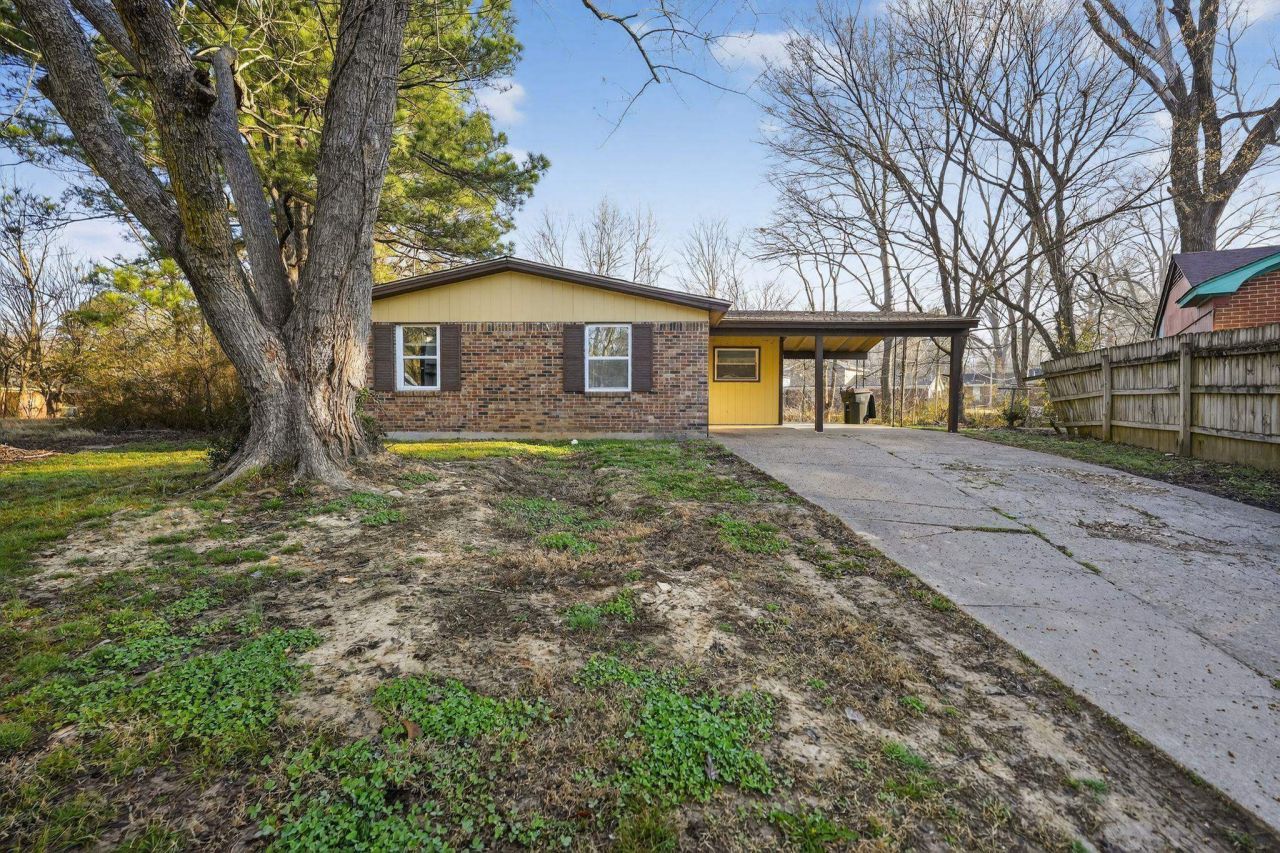 Welcome to this charming 4-bedroom, 1.5-bathroom ranch-style home located in the established Nam Ni Estates community. The exterior features a classic and durable blend of brick and vinyl facade, complemented by a convenient attached, one-car carport. Inside, the home offers a functional and versatile layout with a mix of hardwood, carpet, and linoleum flooring. A standout feature of the interior is the dedicated 6x10 laundry room conveniently located just off the kitchen, providing ample space for organization and chores. Partially chain-link fenced, and situated on a level 0.127-acre lot, this property offers a manageable outdoor space while being positioned near local amenities and schools.